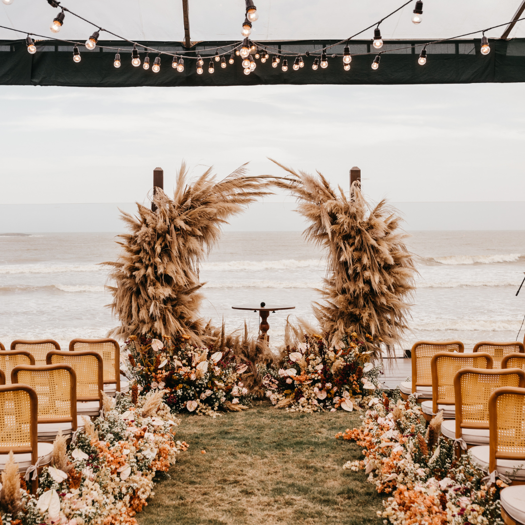 For a more modern and rustic feel, you could use dried flowers or pampas grass in Mocha Mousse tones. Imagine soft mocha-colored blooms combined with gold and greenery—it’s a look that will make your wedding photos feel timeless and romantic.